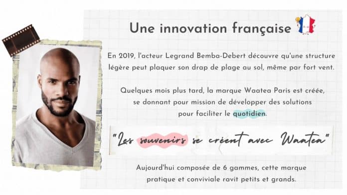 Les gammes Waatea ont été inventées et développées en France. En 2019, l’acteur Legrand Bemba-Debert découvre qu’une structure légère peut plaquer son drap de plage au sol, même par fort vent.