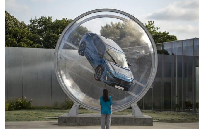 Ces spécialistes de la conception d’installations originales uniques, ont créé cet écrin ; avec ” La Sphère”, qu’est-ce qui est en haut ? Qu’est-ce qui est en bas ? Comment la nouvelle PEUGEOT 408 peut-elle tourner à l’envers ou se tordre pour se déplacer de manière aussi inédite ? La réponse est donc cette sphère transparente qui entoure la voiture et la montre ainsi sous tous les angles.