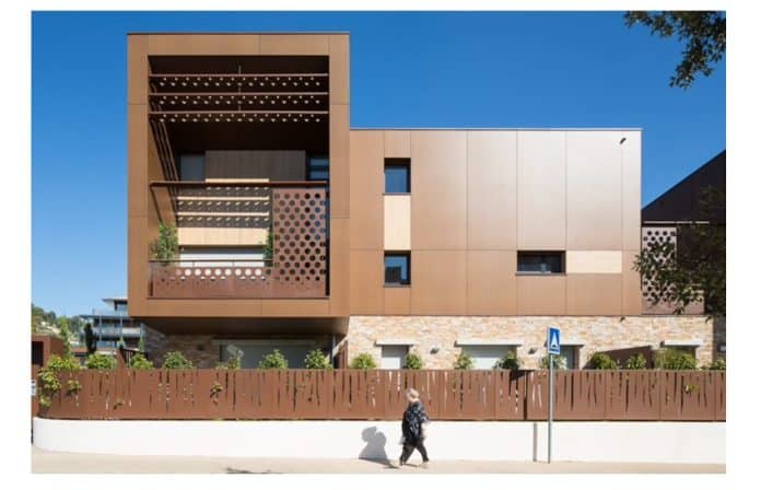 Ces nouveaux décors dans la gamme Max Exterior SKY de chez Fundermax sollicitent le sens du toucher par leur texture mate et brute, aux effets pierre naturelle ou béton. Le rendu en façade permet de donner un aspect architectural traditionnel ou contemporain aux bâtiments collectifs, individuels, tertiaires, industriels, publics ou privés. Max Exterior SKY autorise également, grâce à son relief, des jeux de lumières sur les constructions, et peut se décliner sur toutes les surfaces extérieures, telles que les brises soleil, les habillages de balcons ou les sous faces de toitures. Autres atouts de la gamme, une mise en oeuvre simplifiée et une fixation invisible, Eclips, qui a été primée lors de sa première présentation sur le salon Nordbat en mars 2022. Ces trois nouveaux décors, à l’image des douze autres de la gamme, sont labellisés biosourcés et disposent de fiches FDES. Les produits Fundermax allient ainsi avec perfection esthétisme, performance et durabilité.