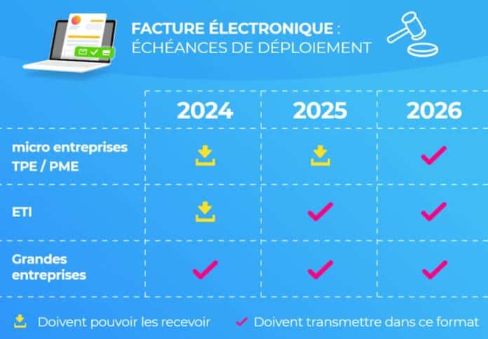 Au 1er juillet 2024 les entreprises auront l’obligation de n’accepter que des factures au format électronique et de les émettre progressivement pour qu’en 2026 la fin du papier soit effective dans tous les échanges entre les entreprises et l’Administration fiscale.